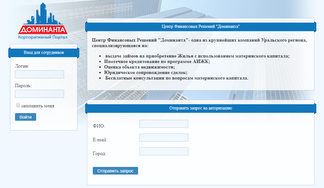 Компания ООО "ЦФР-Доминанта" столкнулась с проблемой внутри-корпоративного взаимодействия сотрудников офиса, руководства компании и удаленных сотрудников из регионов. Для решения проблемы было решено разработать информационное пространство, которое бы объединяло в себе рабочее место для сотрудников офиса и удаленных сотрудников. Важными задачами в разработке информационного пространства были: единая база знаний и обучающий модуль.